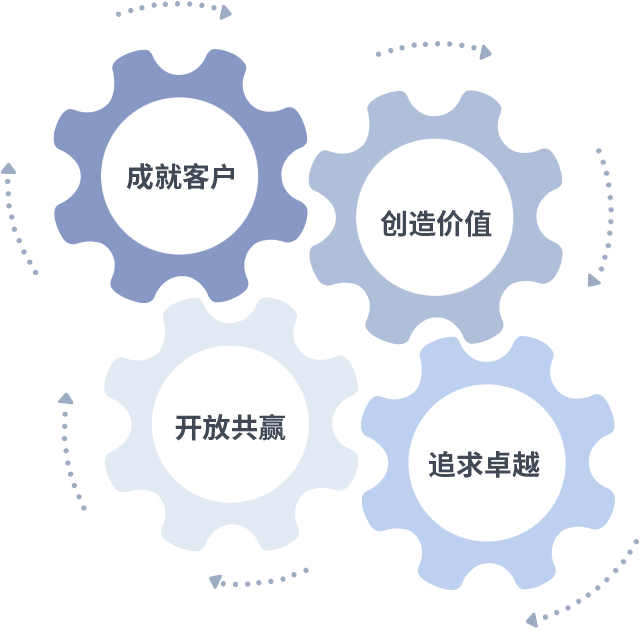 成就客户是一切决策的出发点,,,,创造价值是衡量所有工作的标准,,,追求卓越是南宫NG·28做事做人的态度,,,,开放共赢是南宫NG·28的格局也是最终的结果。。。。价值观的齿轮环环相扣,,推动着组织里的每个人不断向前。。
